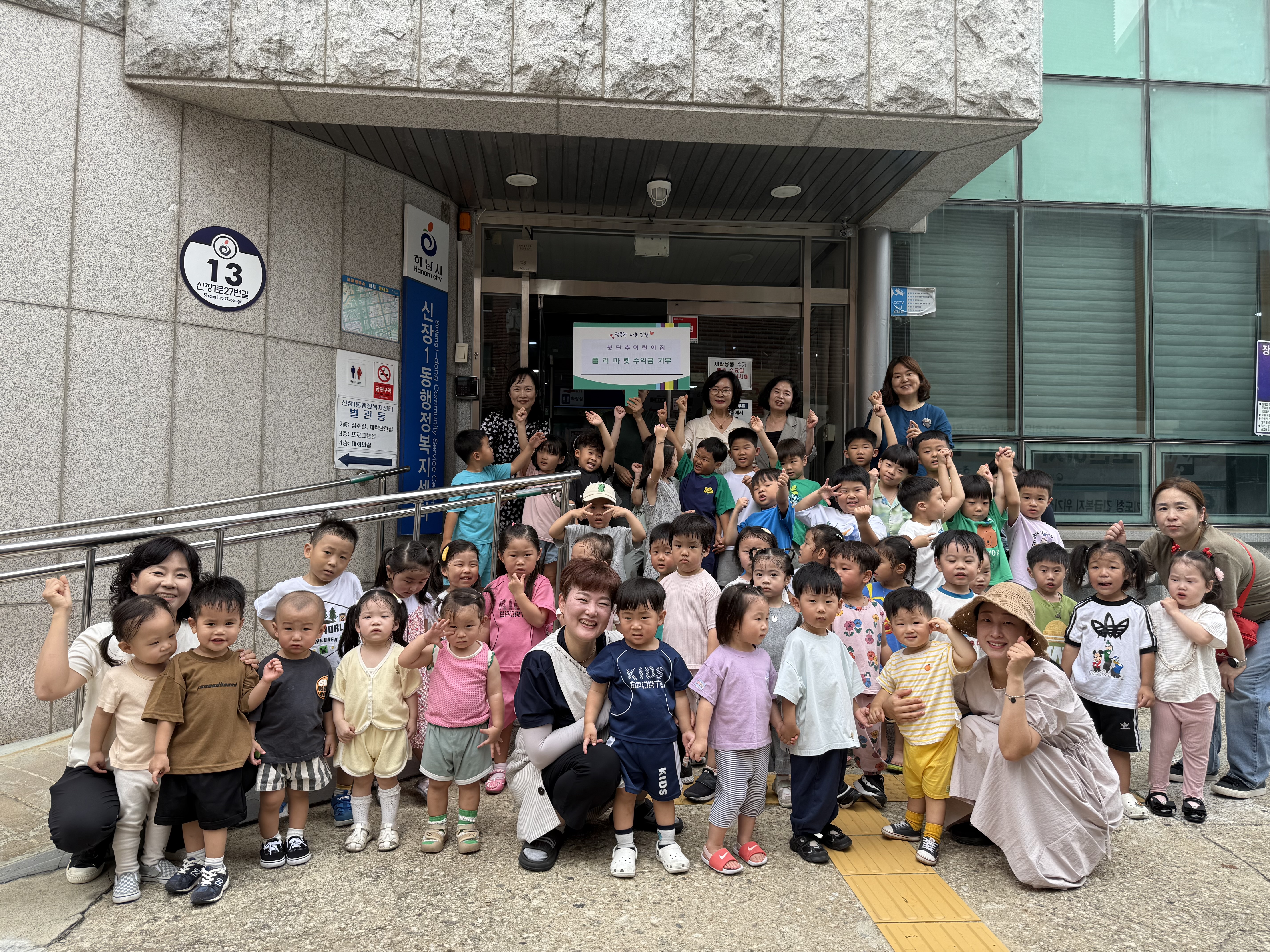 신장1동에 위치한 첫단추어린이집(원장 문경옥)은 최근 바자회를 열어 마련한 수익금 15만6천원 전액을 신장1동 행정복지센터에 기부했다. 이번 전달식에는 원아들이 함께 참여해 기부금 전달 사진을 찍으며 나눔의 의미를 직접 느끼는 시간을 가졌다.