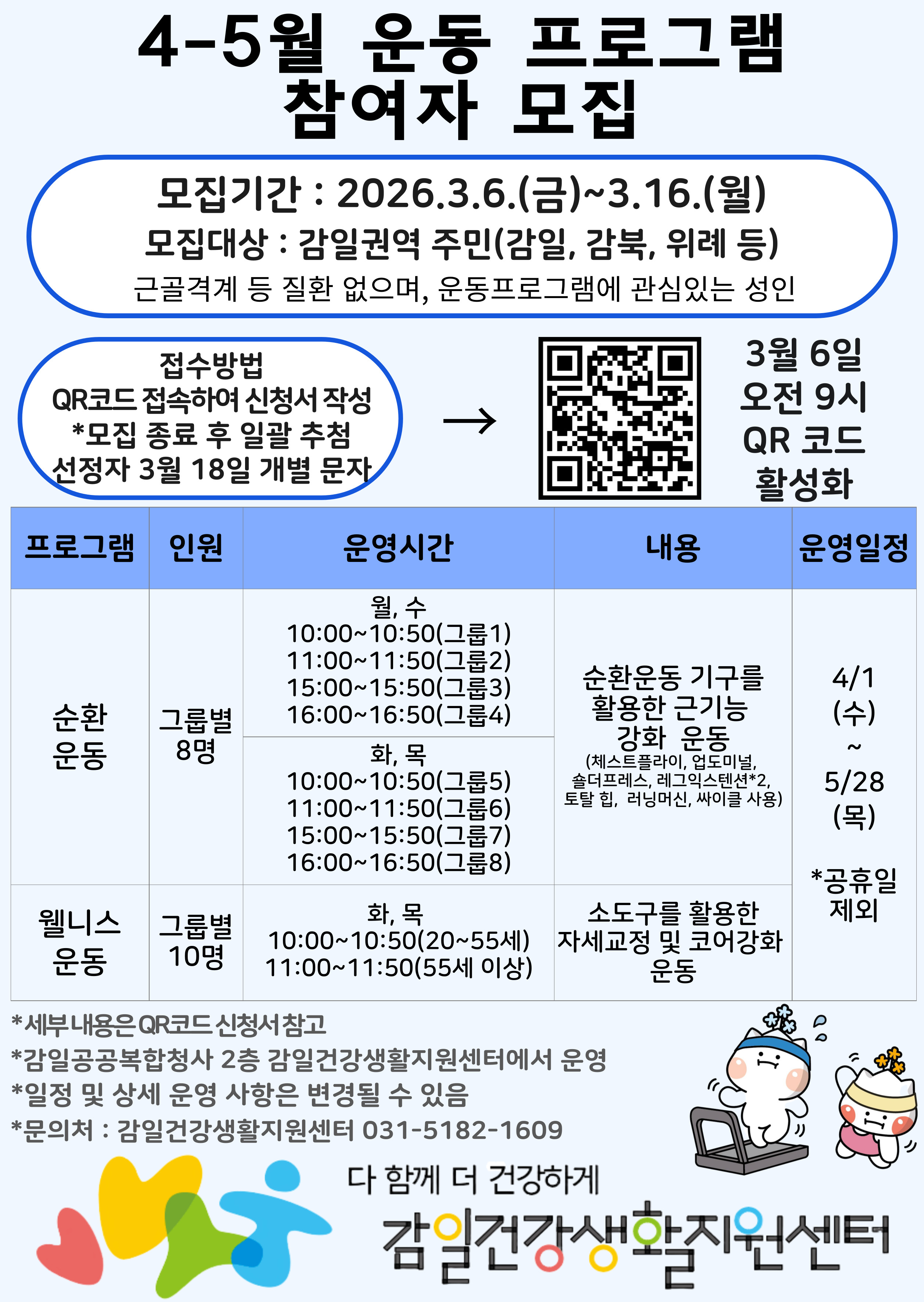 ○ 운영일정 : 포스터 참조○ 접수방법 : 안내문 QR코드 신청서 접수 or 링크 연결 https://naver.me/FwGuzkRR