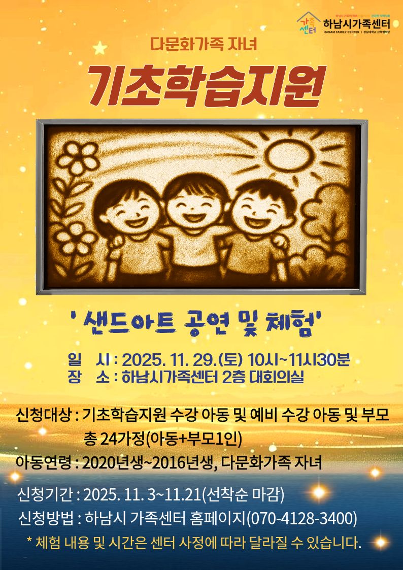 다문화가족 자녀 저학년 기초학습지원 체험학습, 샌드아트 공연 및 체험