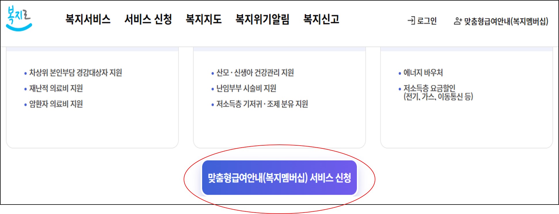 - '복지로 누리집(PC 또는 모바일) > 복지서비스 > 맞춤형급여안내(복지멤버십)'에서 가입가능