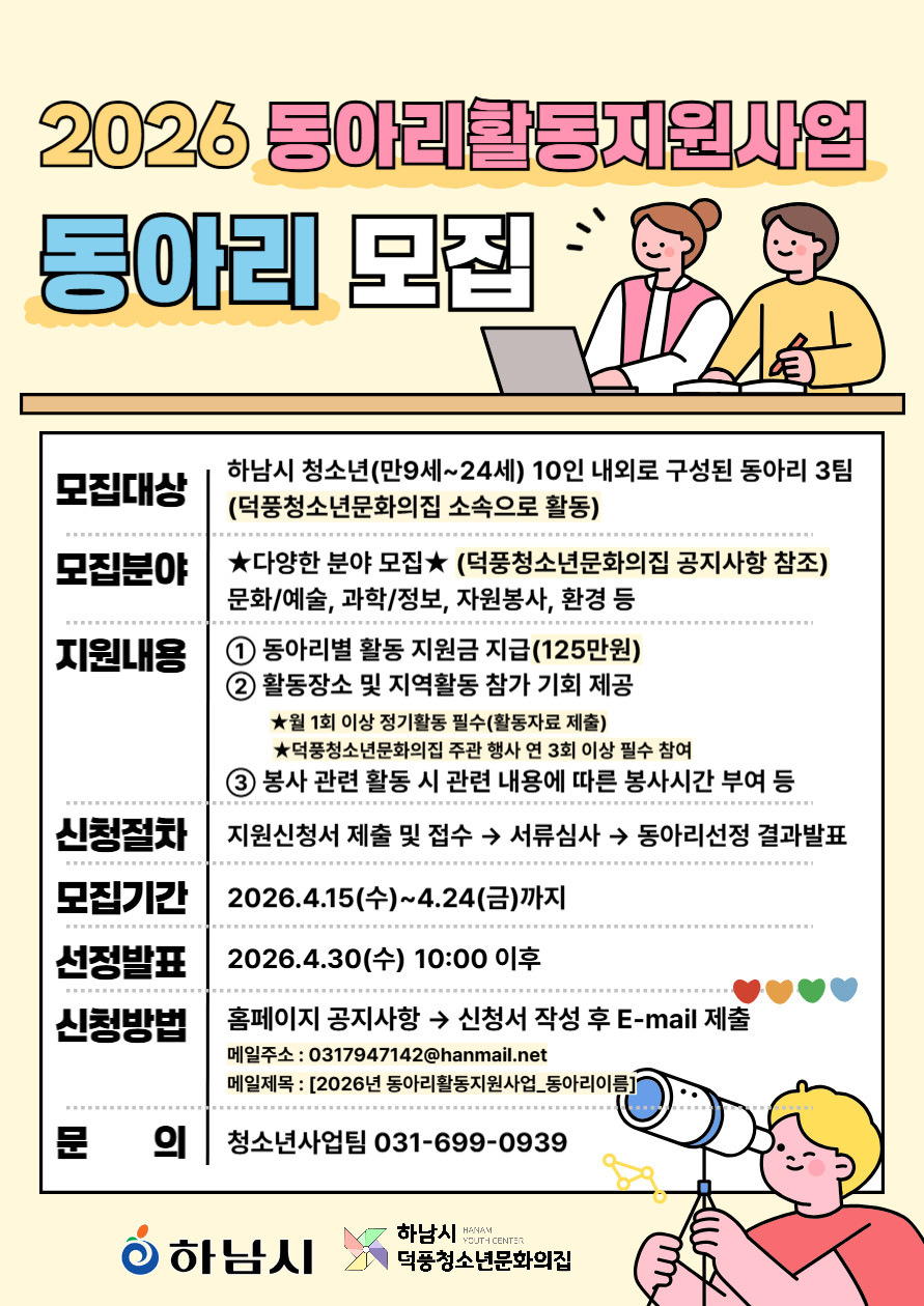 덕풍청소년문화의집 2026년 동아리활동지원사업 동아리 모집 안내